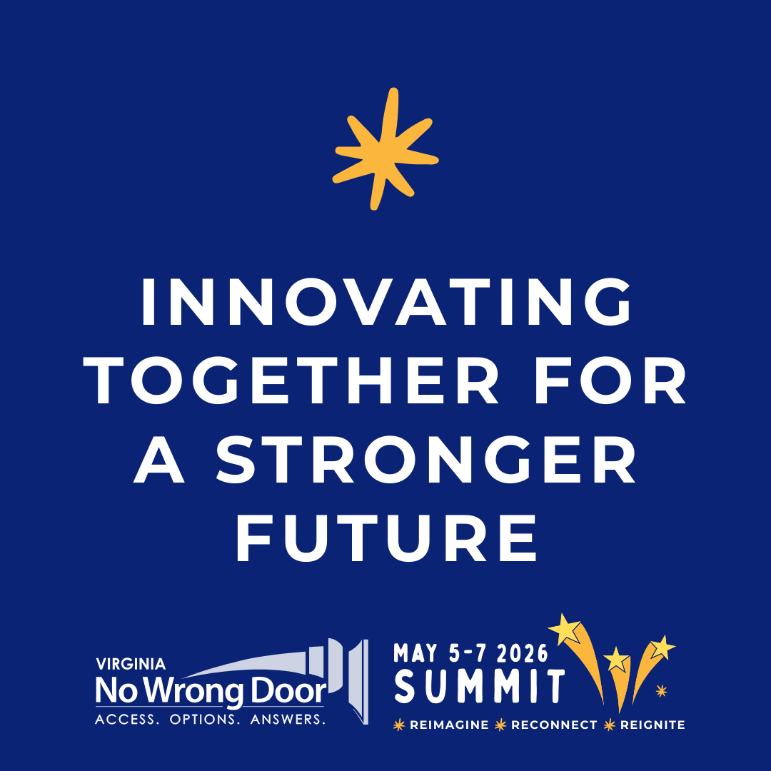 Join us for the No Wrong Door Summit. This year’s Summit theme—Reimagine. Reconnect. Reignite. Innovating Together for a Stronger NWD Future—is all about bringing fresh energy, bold ideas, and renewed collaboration to the No Wrong Door initiative in Virginia.